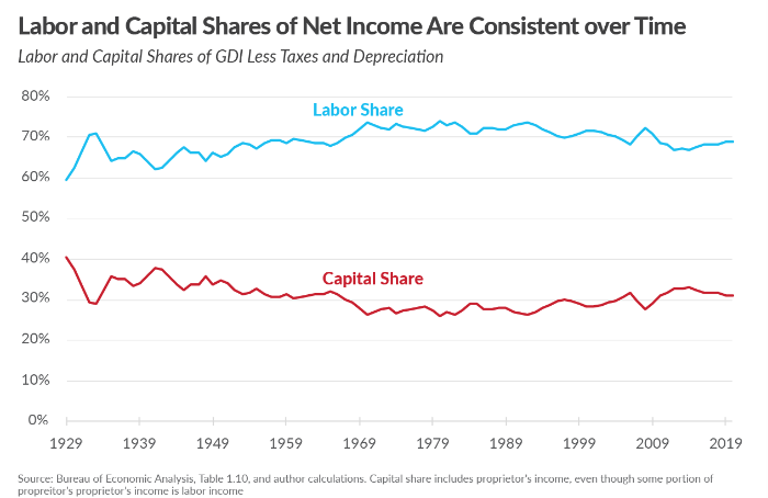 - As with energy, it is difficult to measure empirically the share of wealth captured by labor (or capital). The ratio between the sum of income from labor (or capital) and gross domestic income gives an order of magnitude. ↩︎