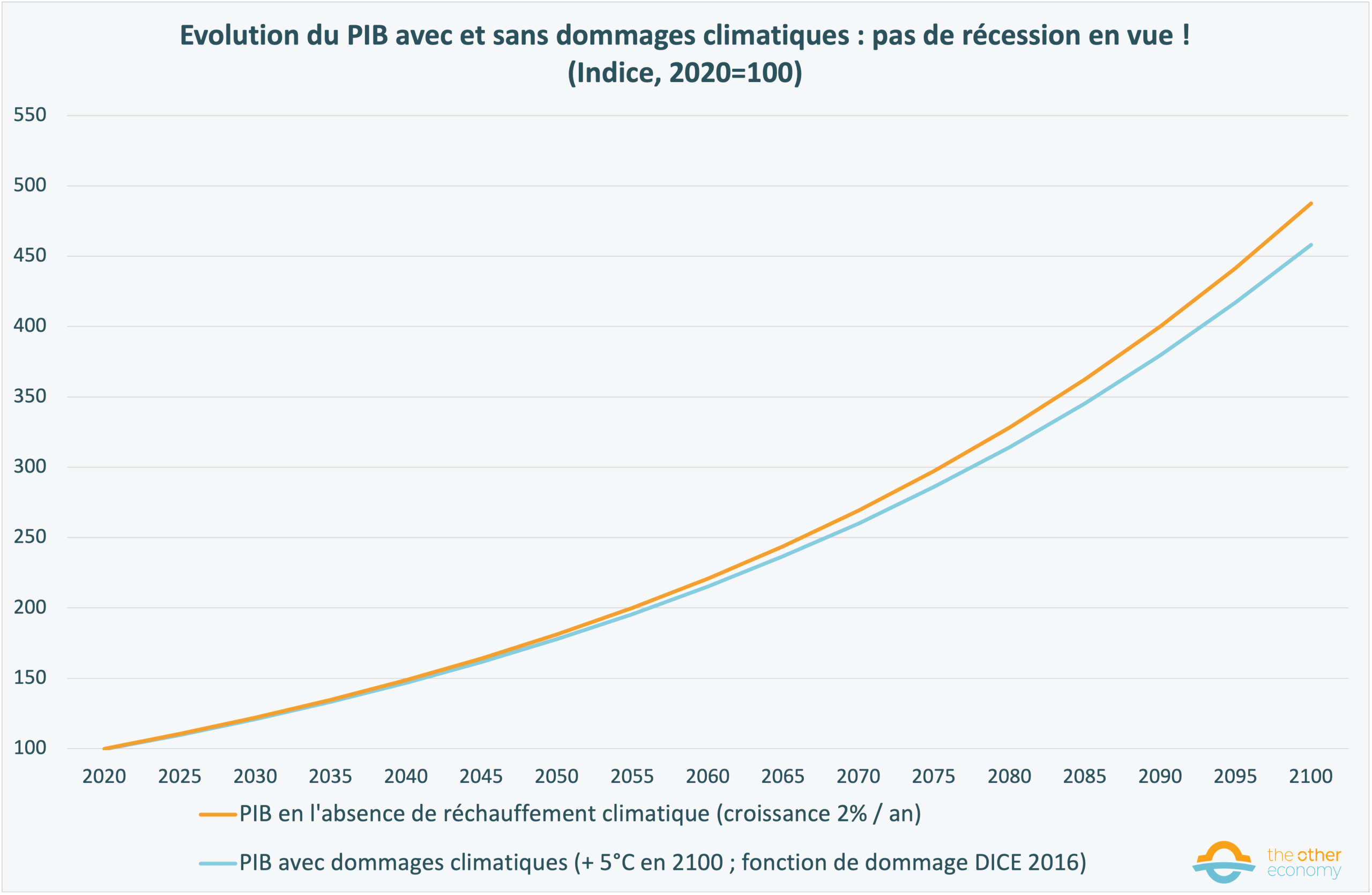 In addition to this limited impact, the wording used is confusing. We’ll see in section 3.C that, in reality, studies on the global economic consequences of global warming most often postulate a simple slowdown in GDP growth over the course of the 21st century, and not a recession as was the case in 2009 and 2020. 5.