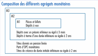 The European Central Bank distinguishes and monitors three interlocking monetary aggregates: M1, M2 and M3.