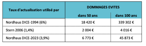In the first version of DICE (1994), €339,000 of GDP loss over 100 years must be avoided to justify €1,000 of investment today. This is almost 85 times more than using Stern’s discount rate. Note that in the latest version of DICE (2023), despite all the advances in climate science, the rate used by Nordhaus remains very high.
