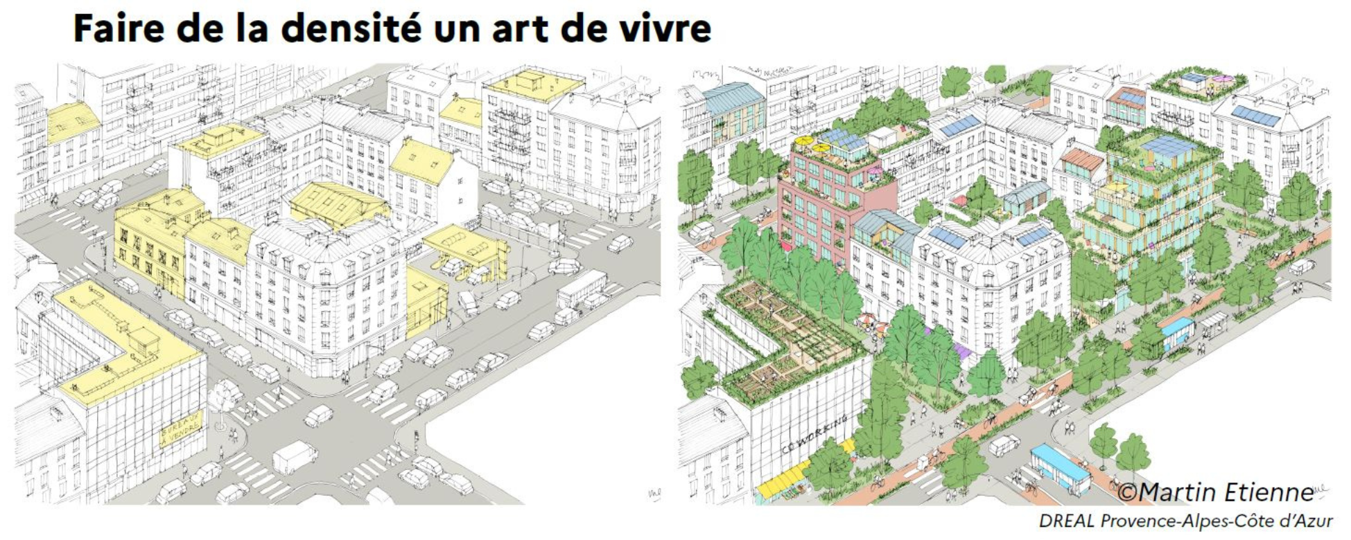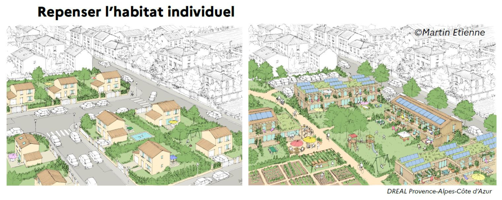 DREAL PACA has produced a series of illustrations to show what it might look like to implement various land-saving levers to reconcile the reduction of artificial development with housing production.