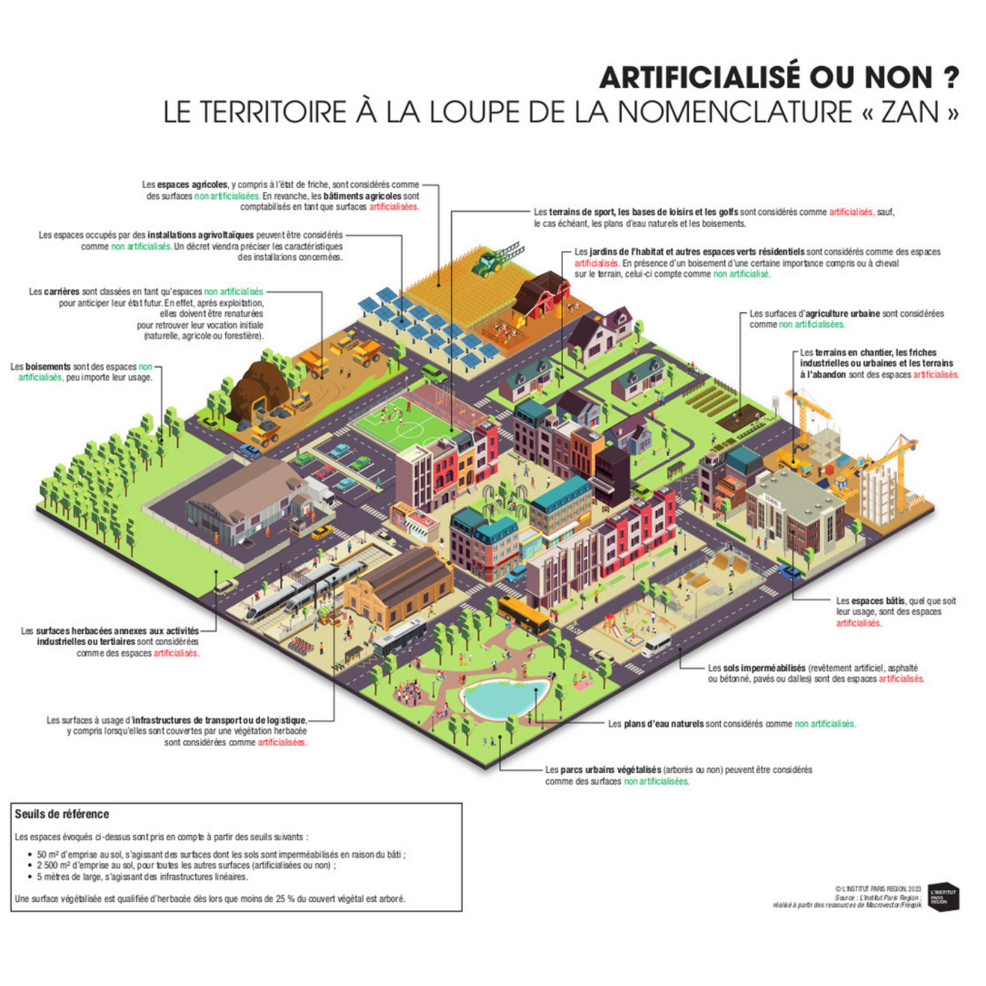 - De la loi Climat et résilience à la loi ZAN : le cap de la sobriété foncière, entre avancées et questionnements, Institut Paris Région, 2023. ↩︎