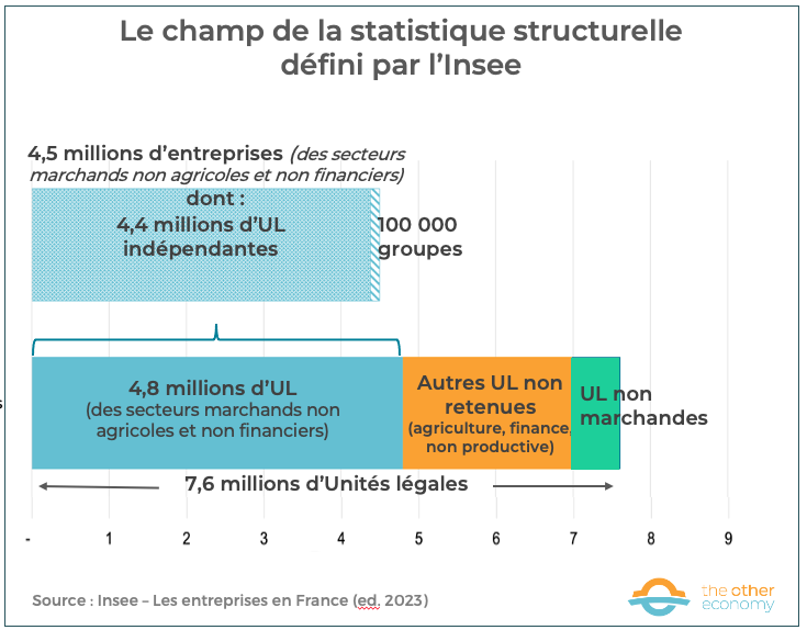 Source Les différents niveaux et champs d’observation de l’appareil productif en France – Les entreprises en France Édition 2023 – Insee and L’essentiel sur… les entreprises – Insee 2024