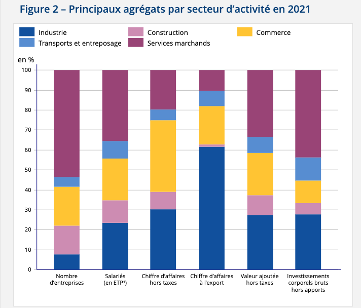 Source L’appareil productif français en 2021– Les entreprises en France Édition 2023 – Insee