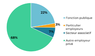At the end of 2021, of the 7.6 million legal units in France, over 55% are sole proprietorships (approx. 4.2 million), 37.6% are companies (approx. 2.8 million) and 3% are associations (approx. 236,000). The “Other” category includes in particular public administrations (state administration, local authorities, social security administrations, etc.).