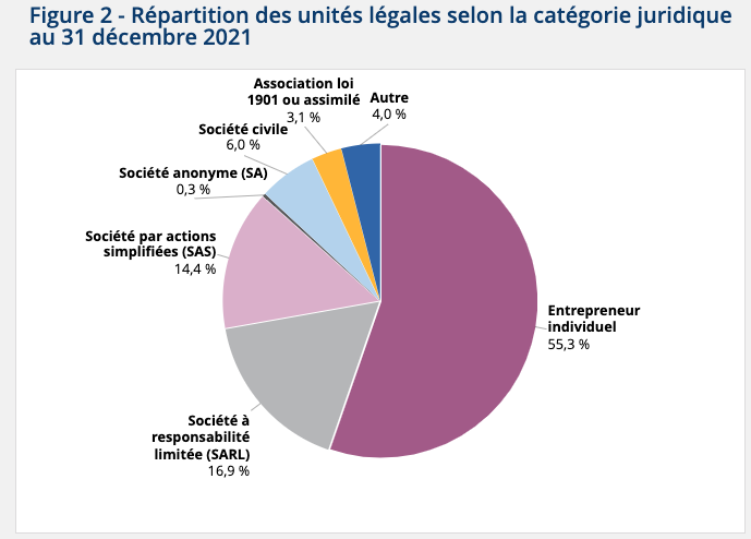 It is therefore not possible to fully deduce from the above statistics the legal form of the companies included in Insee’s structural statistics. However, we can assume that at least one out of every two businesses is a sole trader.