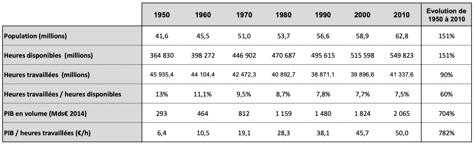 Over the long term, effective working time (as a percentage of the human lifespan) has steadily decreased, as the statistics for France show. So, in effect, we’ve been sharing the work. The 35-hour working week introduced under Lionel Jospin also helped to create jobs (an Insee study put the figure at 350,000). 27 and a censured DARES report 28 confirmed these figures). The extent of the debate at the time was due, in part, to the fact that the changeover was sometimes carried out too quickly (as in the case of hospitals, where there was a shortage of staff). And for company directors and employers’ representatives, the switchover was complicated to implement.